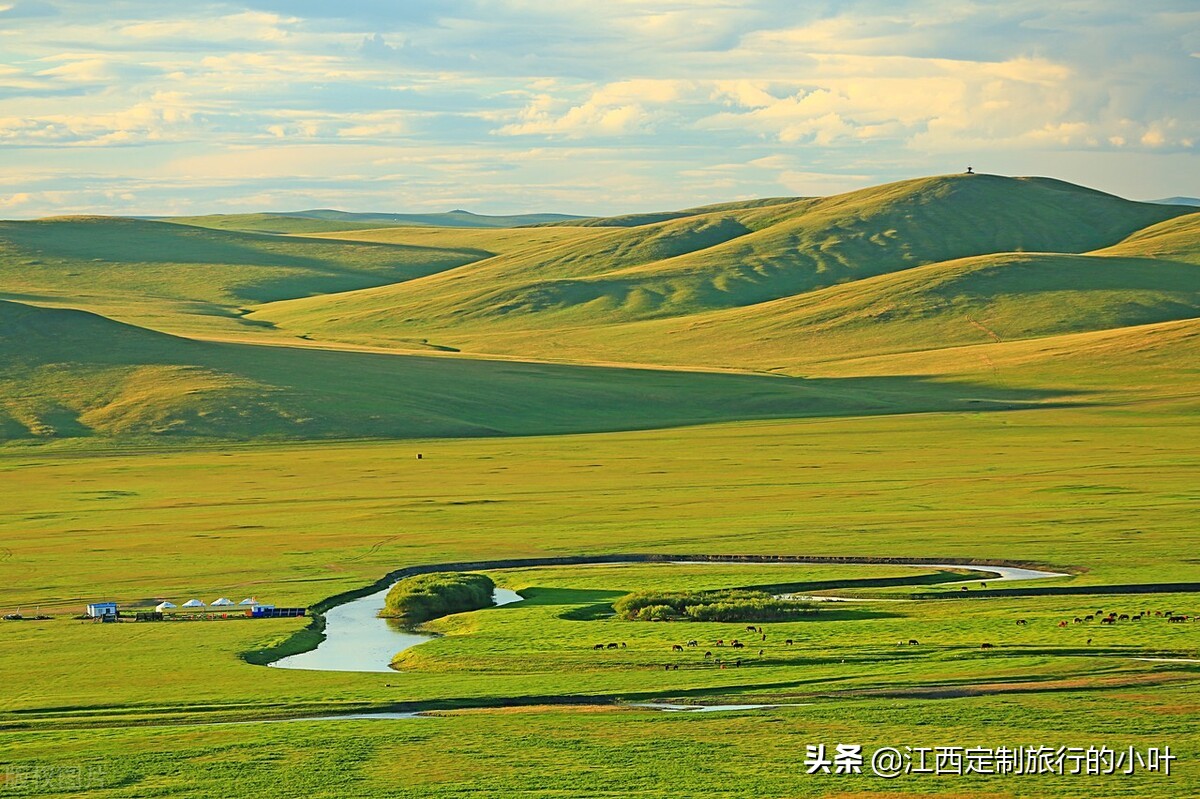 莫尔格勒河:老舍先生曾用天下第一曲水来形容它的美,如果说内蒙古草原的代表是呼伦贝尔大草原,然这里是呼伦贝尔草原中的亮点的亮点,曲十八弯的河流流淌在一望无际的呼伦贝尔大草原,宛如一条丝带在太阳光照射下闪着金光,位于陈巴尔虎旗,发源于大兴安岭。