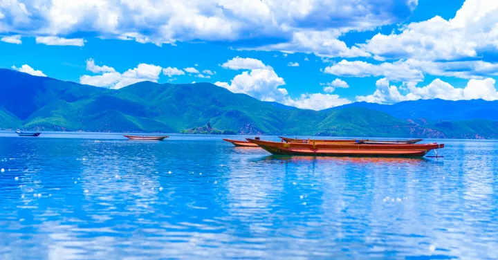 泸沽湖主要景点有格姆女神索道、小草海、泸沽三岛等,电瓶车环湖是最热门的游玩方式。泸沽湖翠绿如画,身临其境,水天一色,清澈如镜。最深能见度可达12米。晨曦初露,湖水如染,一片金红;朝阳徐徐上升,则为翠绿;待夕阳西下,又成一片墨绿。每一刻都不能错过。