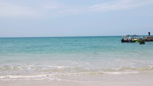 看着海滩上悠哉悠哉的人们,漫步在这干净的沙滩上,下去踩踩水,沿着海岸线嬉闹,宛如漫步在地碧海蓝天里~