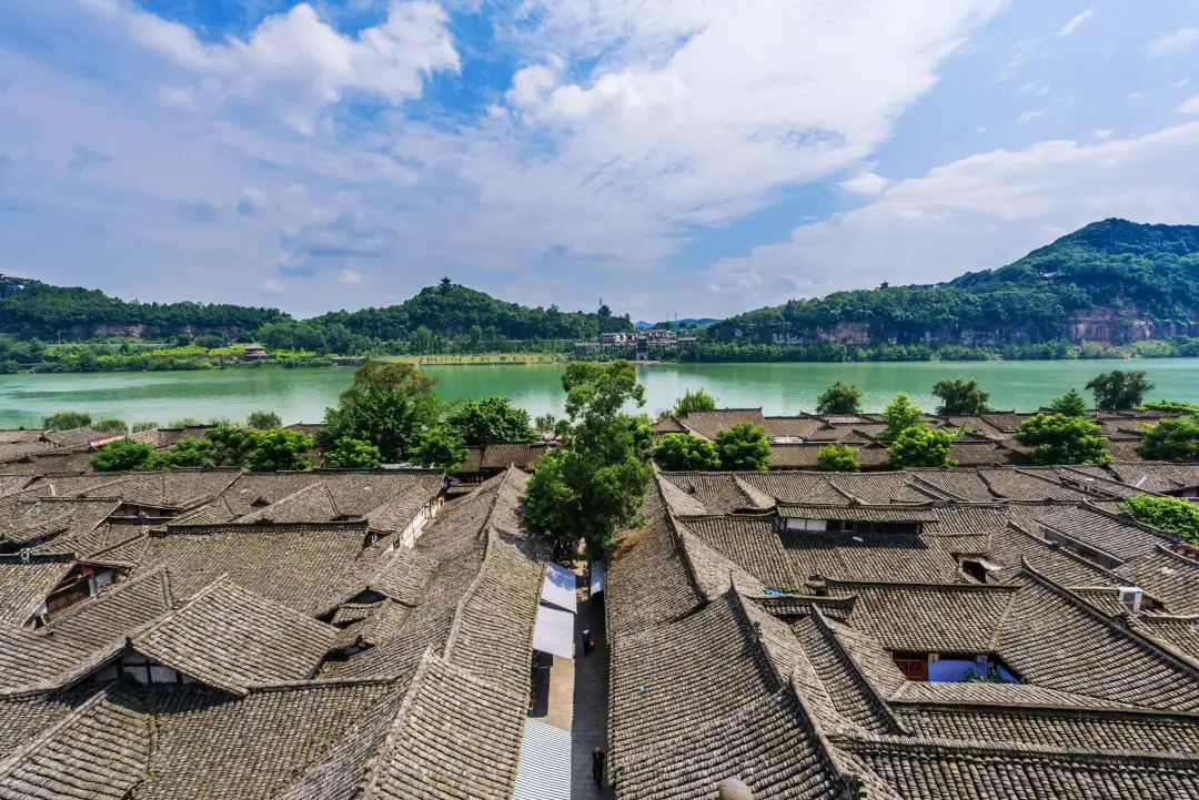 古镇依山傍水,镇上小店衣食住行应有尽有。住宿可以找家巴适的临江小院,白天天热可以在茶楼搓麻或者去体验当地有名的醋泡脚,晚上一家人就趁着月色和江风,在古镇溜达闲逛吃美食。