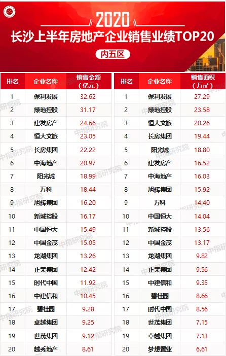 图:长沙内五区房地产企业TOP20销售业绩门槛值
