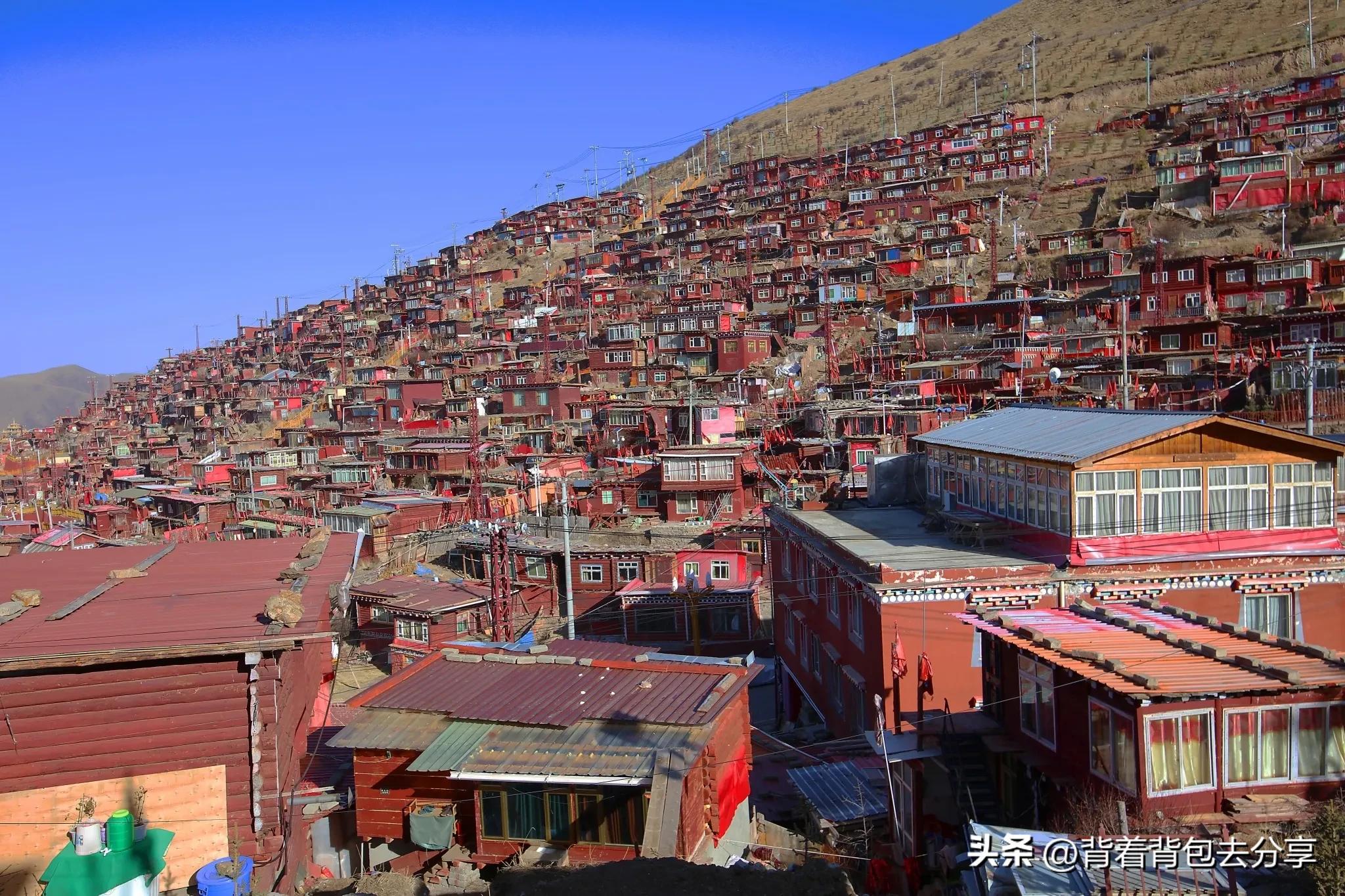 喇荣五明佛学院,位于甘孜藏族自治州色达县洛若乡,是世界上最大的佛学院,连绵数公里的山谷,布满了密密麻麻的木屋,在这里可以看到僧众上下课,辩经的壮观场面,每当清晨的佛学院烟雾缭绕,藏民们在坛城,也开始了跪拜和转经,虽然,色达海拔3600米左右,高度差大,游玩的途中,面对着高落差的地方,这里的每一步都是谨慎的,避免出现高反,或者提前食用高反药红景天,减少高反机率,建议4月份-9月份去往