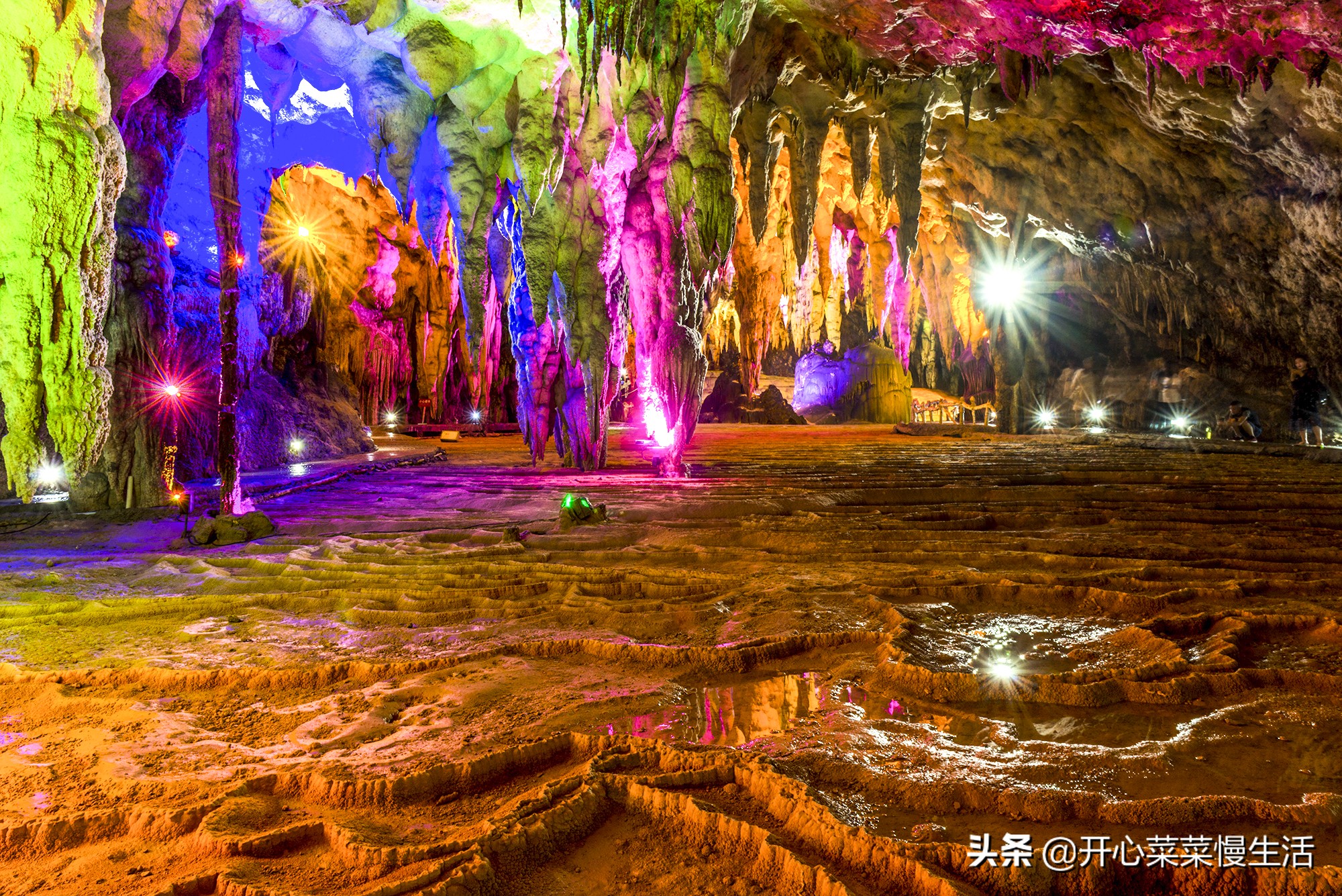 吉星岩最大的特色是溶洞地质奇观,全洞分龙王宫(地下河)、通天洞、惊天洞和摩天洞4层,被称为“天上迷宫”。