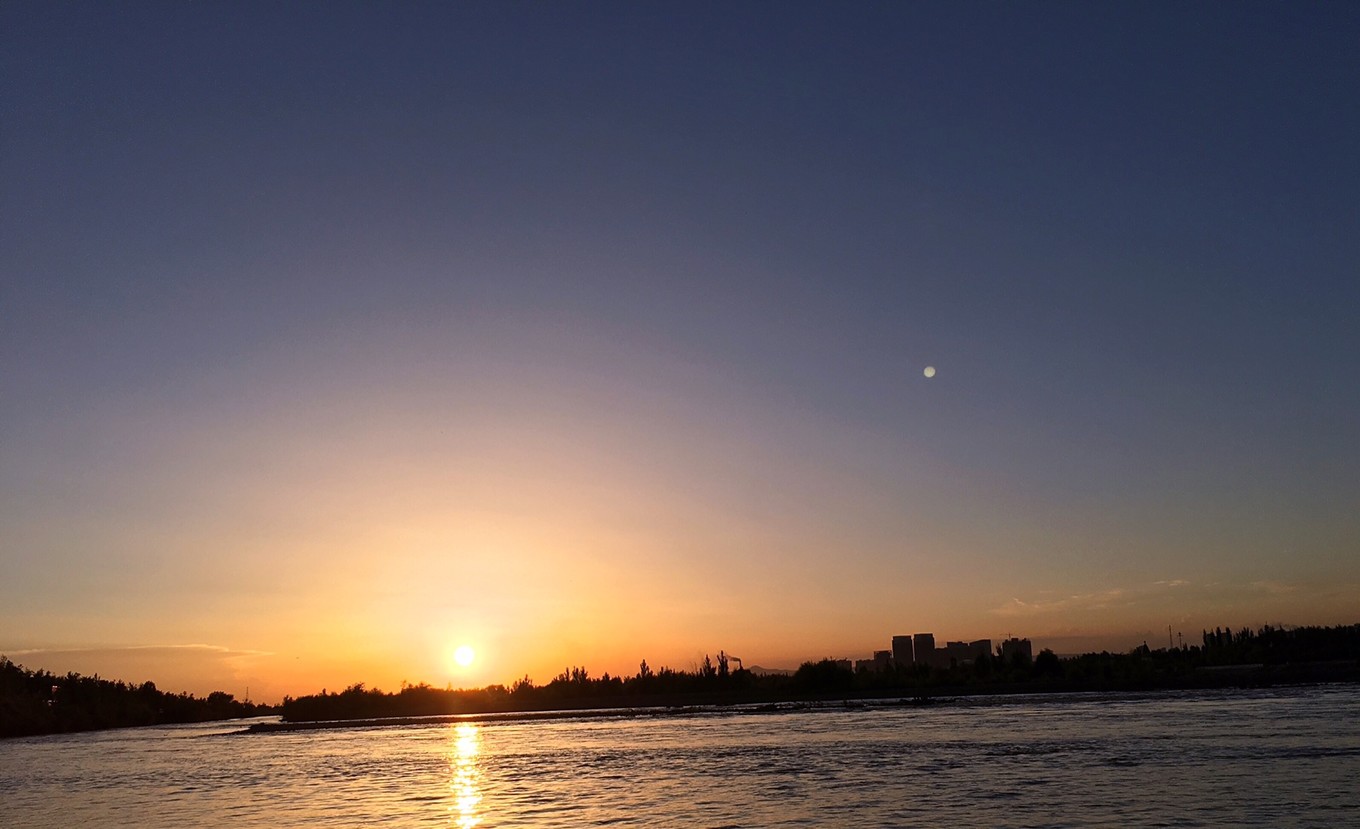 伊犁 河大桥日落,免费,晚餐建议去路边的烧烤店啥的味道比五颗星的餐厅要好很多