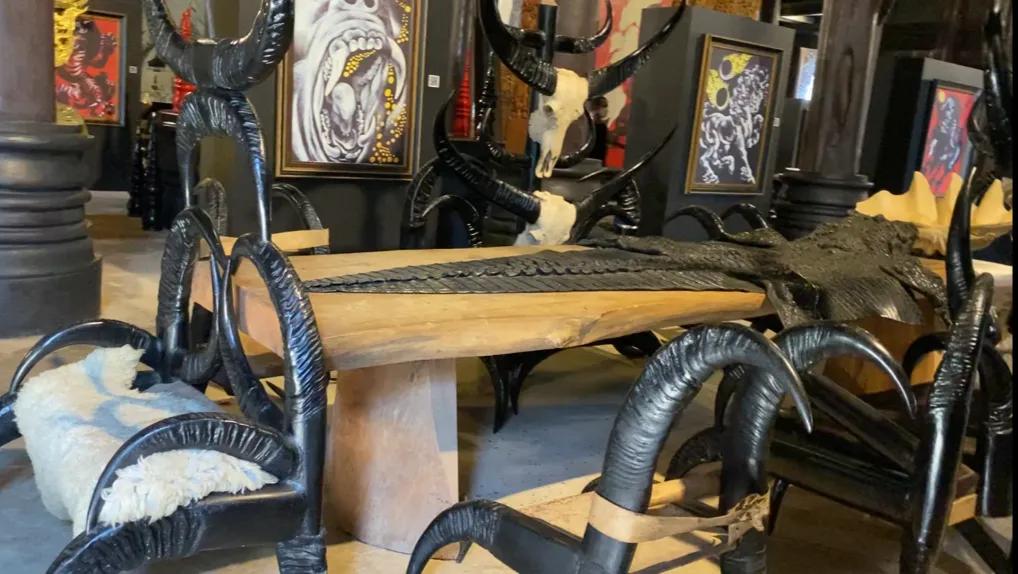 黑庙里主要的展品就是龙柱,兽皮,牛角制作成的座椅,远古时代猎杀工具,很压抑的建筑,神秘的石阵,参天古树,让你有一种置身地狱的感觉,很原始的感觉,但是又不全是,就是让你有一种思考,对生命进程的各种思考,还有对男性力量的一种原始的崇拜,我觉得我也说不清楚,需要艺术造诣或者对考古研究比较精通的人,或者对宗教理解能力比较深的人会比较容易解说清楚!