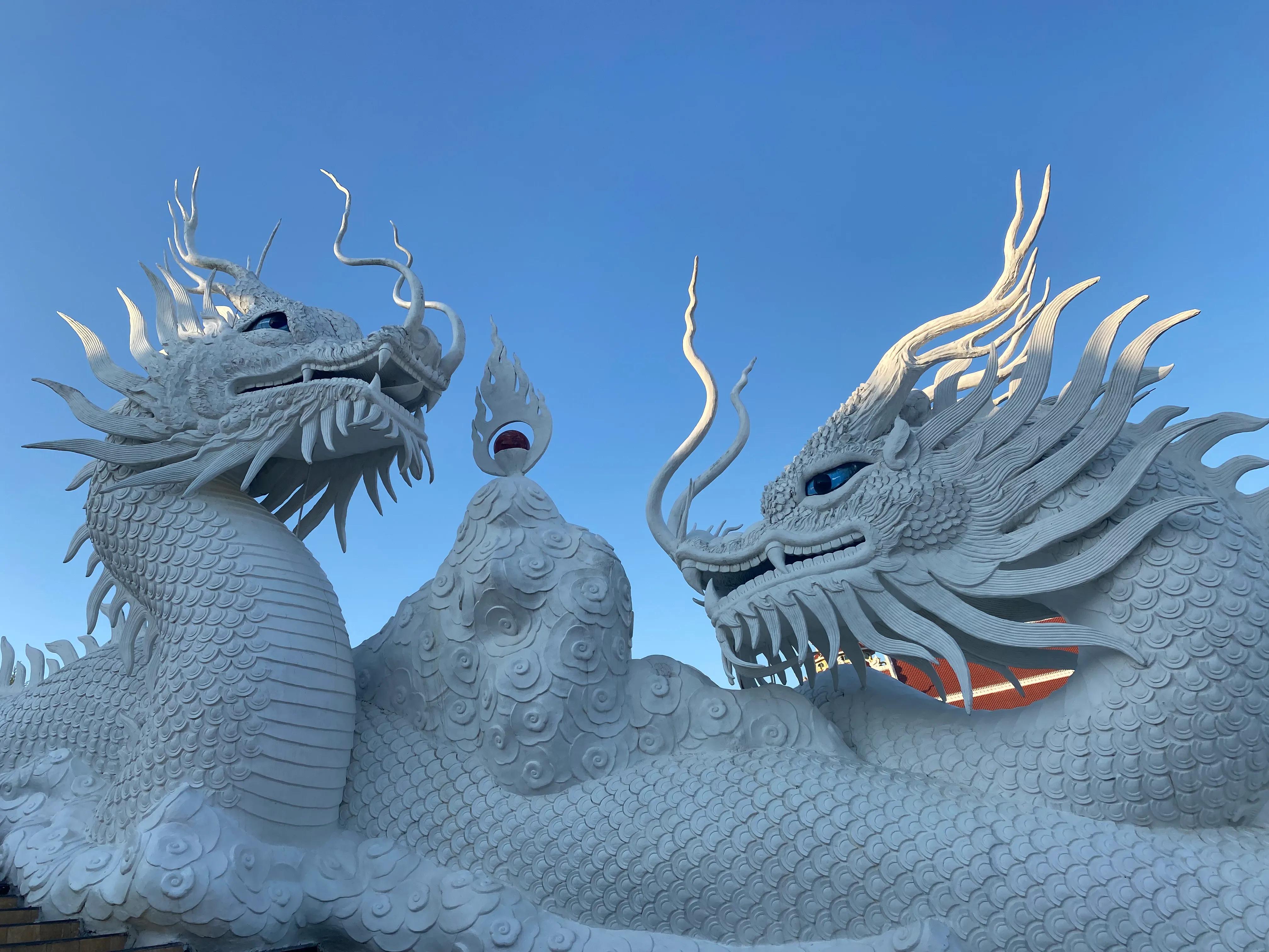 第四个推荐的是清莱的观音大佛,艺术性比不上白庙,但是位置非常高,工程宏大,观音像里面有电梯直达26楼,可以俯瞰整个清莱,前面的两条龙也雕刻得非常栩栩如生,非常的壮观!