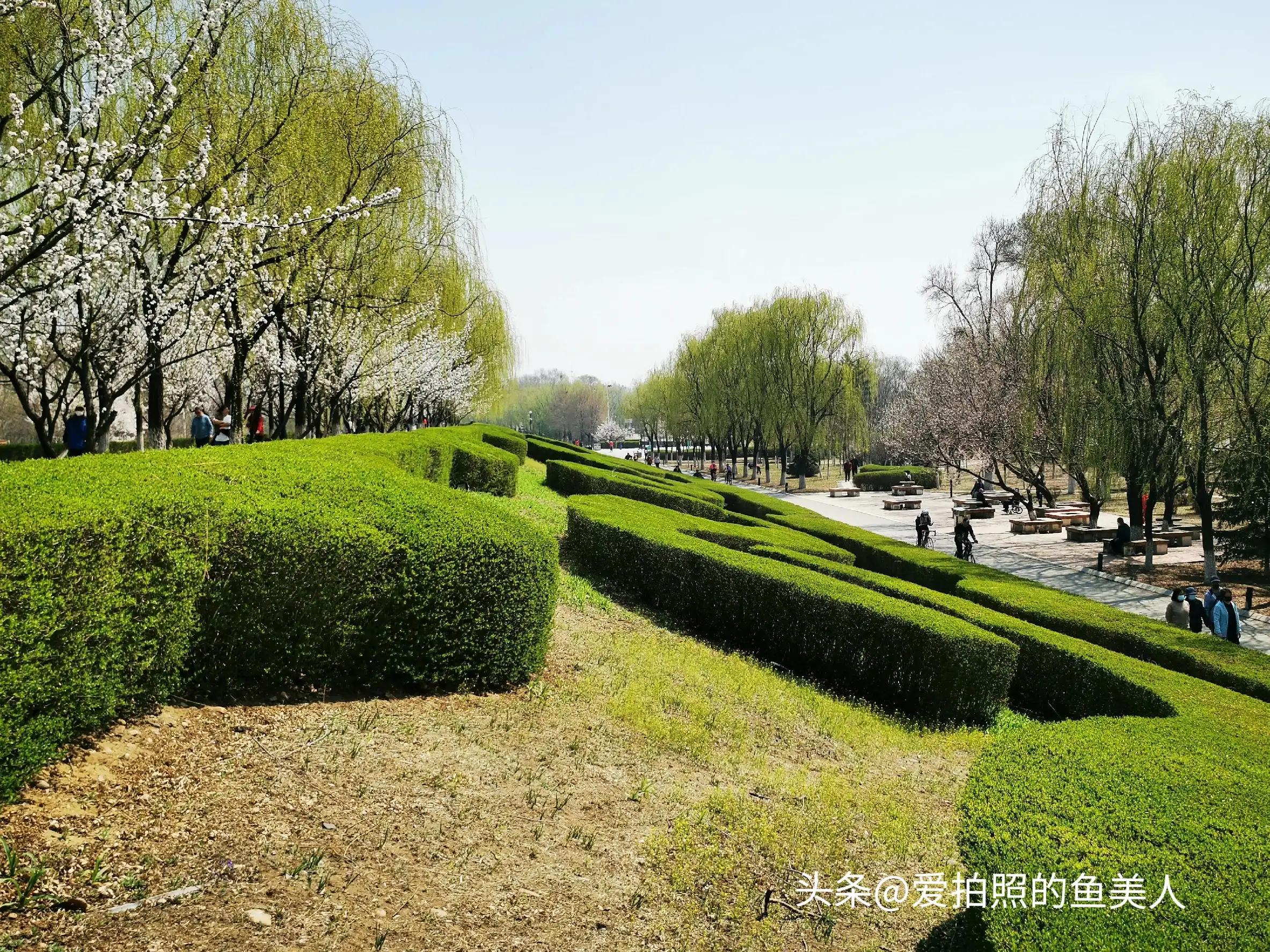 由东向西的高高堤畔,两侧杏树柳树交替种植,杏低柳高,妥妥滴一条别致的杏柳大道,有木有?!