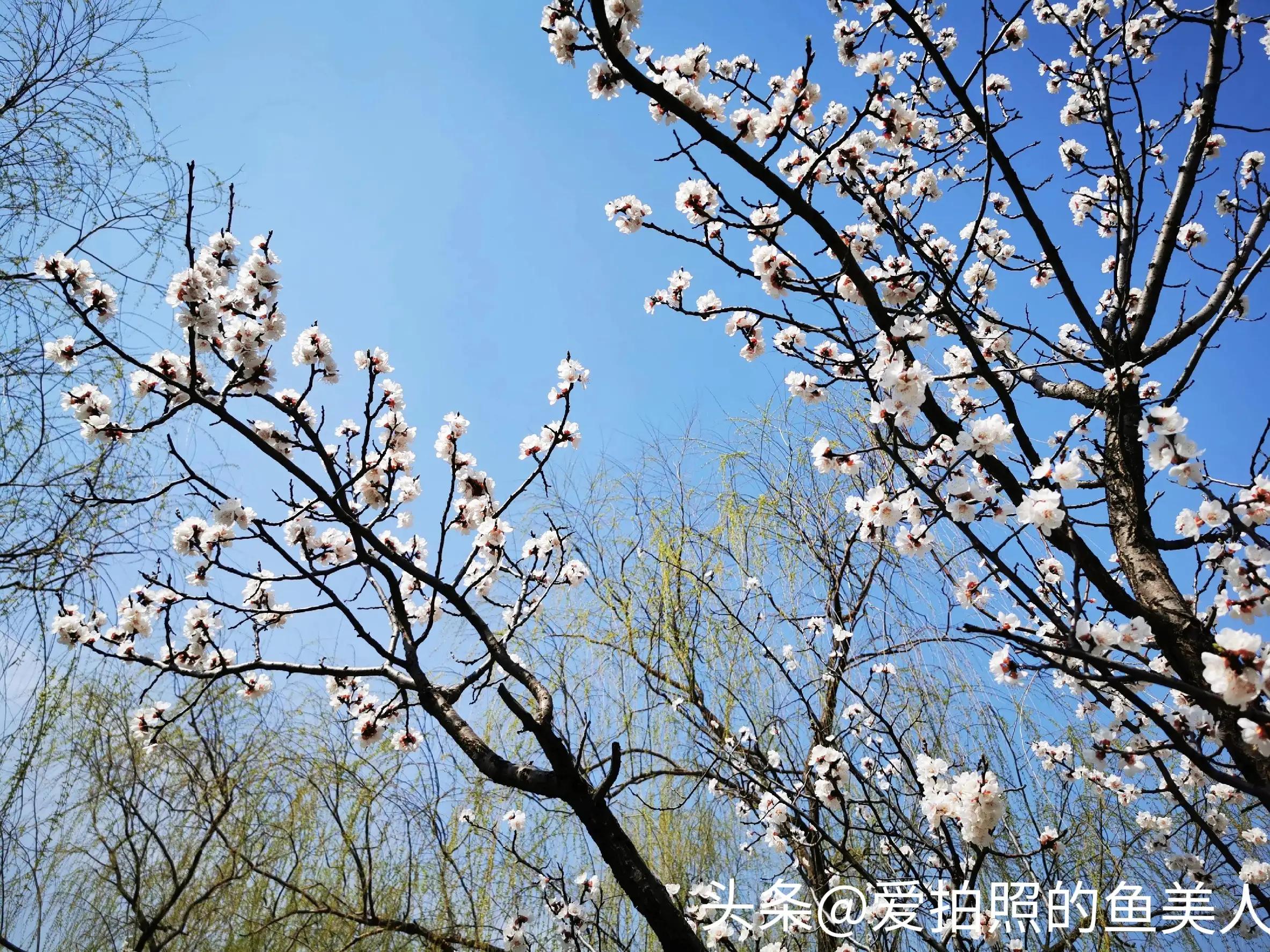 拾阶而上,踏上河堤,春光扑面而来。杏花白如雪,与嫩柳相伴,在蓝天映衬下,十分亮眼。