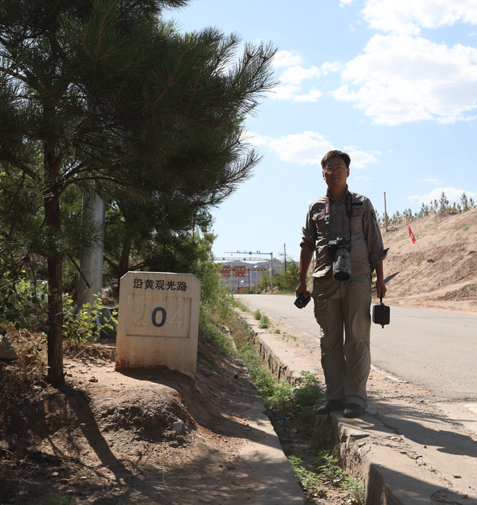 如果开车通过,要检查核酸证明之类,所以可以把车停在检查站这边,然后步行过去。沿黄公路0起点,并无什么特殊之处。这个石碑底色是204,把中间的0涂上了蓝色,作为0起点的标志。