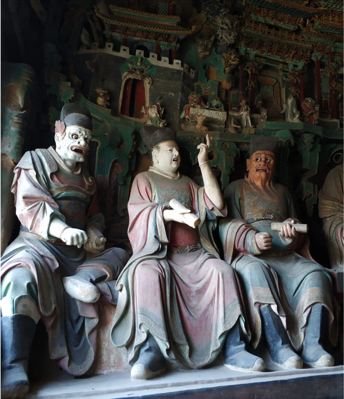 而不远处的崇庆寺,寺内同样有着满堂宋塑。三大士殿内的宋塑十八罗汉,大小比例与真人略同,神态自然生动,被誉为“宋塑之冠”。