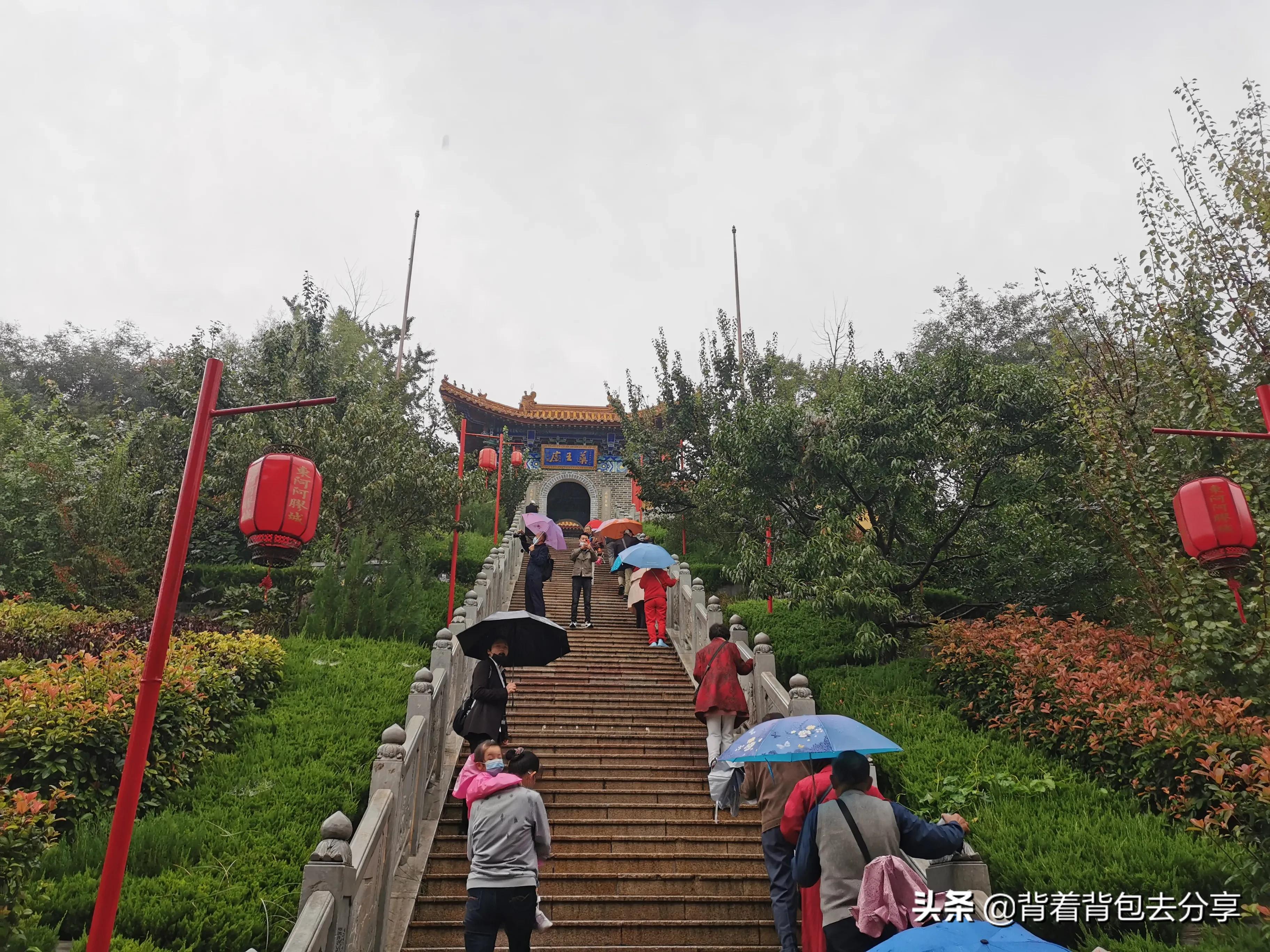 出阿胶城东门,步行几十米,便是药王山景区,虽然下着小雨,但依旧没有阻挡游客游玩的步伐,在药王山下牌坊,已有众多游客在此拍照打卡,山虽不高,但庄严的药王庙,就屹立在山巅,多数游客也是奔向药王庙祈福,不久一会,看到多数游客已缓缓离去,我们一家人,也在此留念拍照