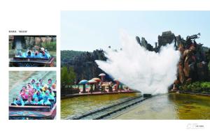 “兽血征程”:嬉戏谷的“激流勇进”与别处不同,整个项目占地12000平方米,每20名游客组成一支冒险船队,他们将穿过巨型人工山体中穿凿而出的幽境,体验35度的下冲角度,冲下26米高的速滑水道,船只最快速度可达80千米/小时。