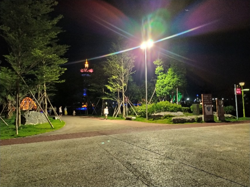 去往园博园观景桥,路灯后面的灯光塔若隐若现,给人巨大的诱惑力,吸引着你前去观赏。