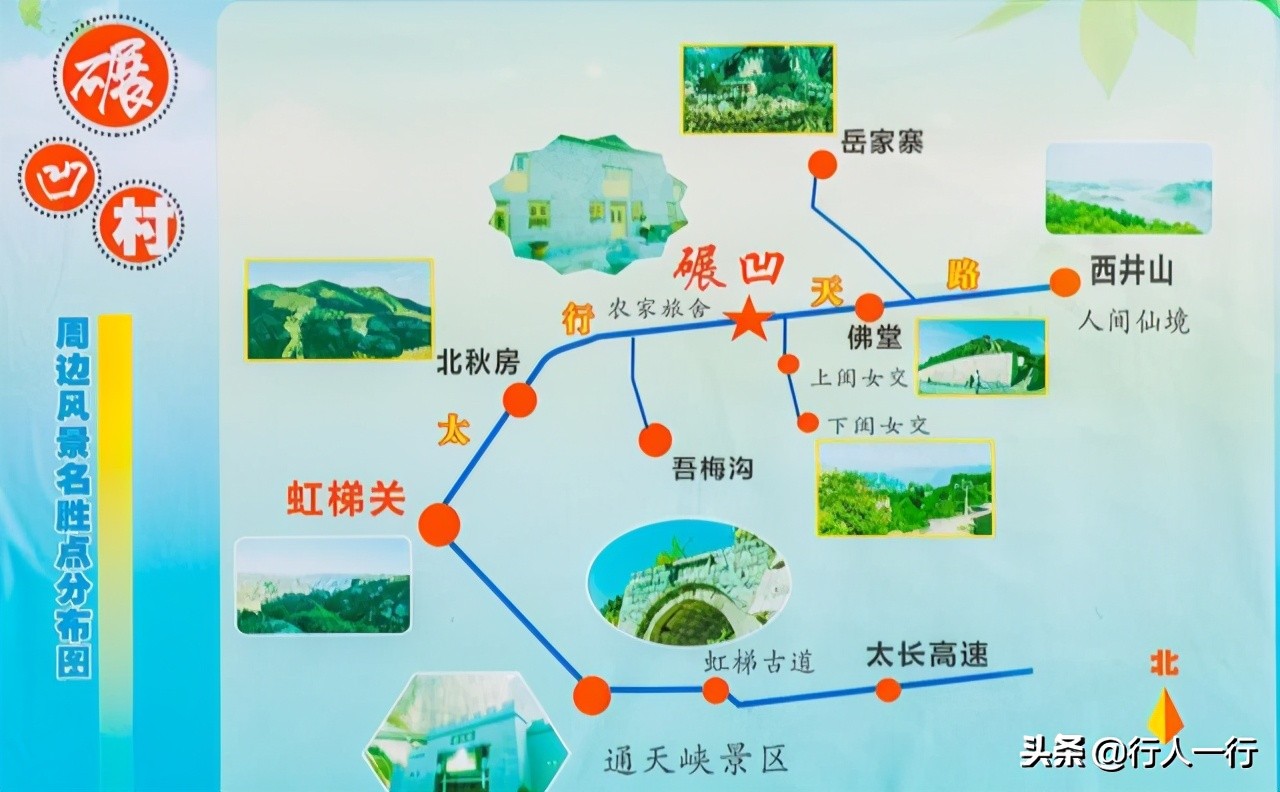 西井山、岳家寨天路,东起棒姣村,经西井山、岳家寨向西行至虹梯关乡。虹梯关地处这几条要道的中心路口,也是去往太行天路的中转点。