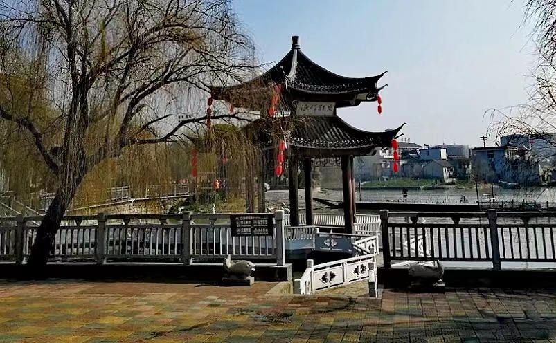 冶春园为东西走向,沿河依次为水绘阁、香影廊、餐英别墅、御园轩等明清建筑。水绘阁与香影廊之间有长廊,旁边是绿化带,还有石桌、石凳,累了可以歇歇。