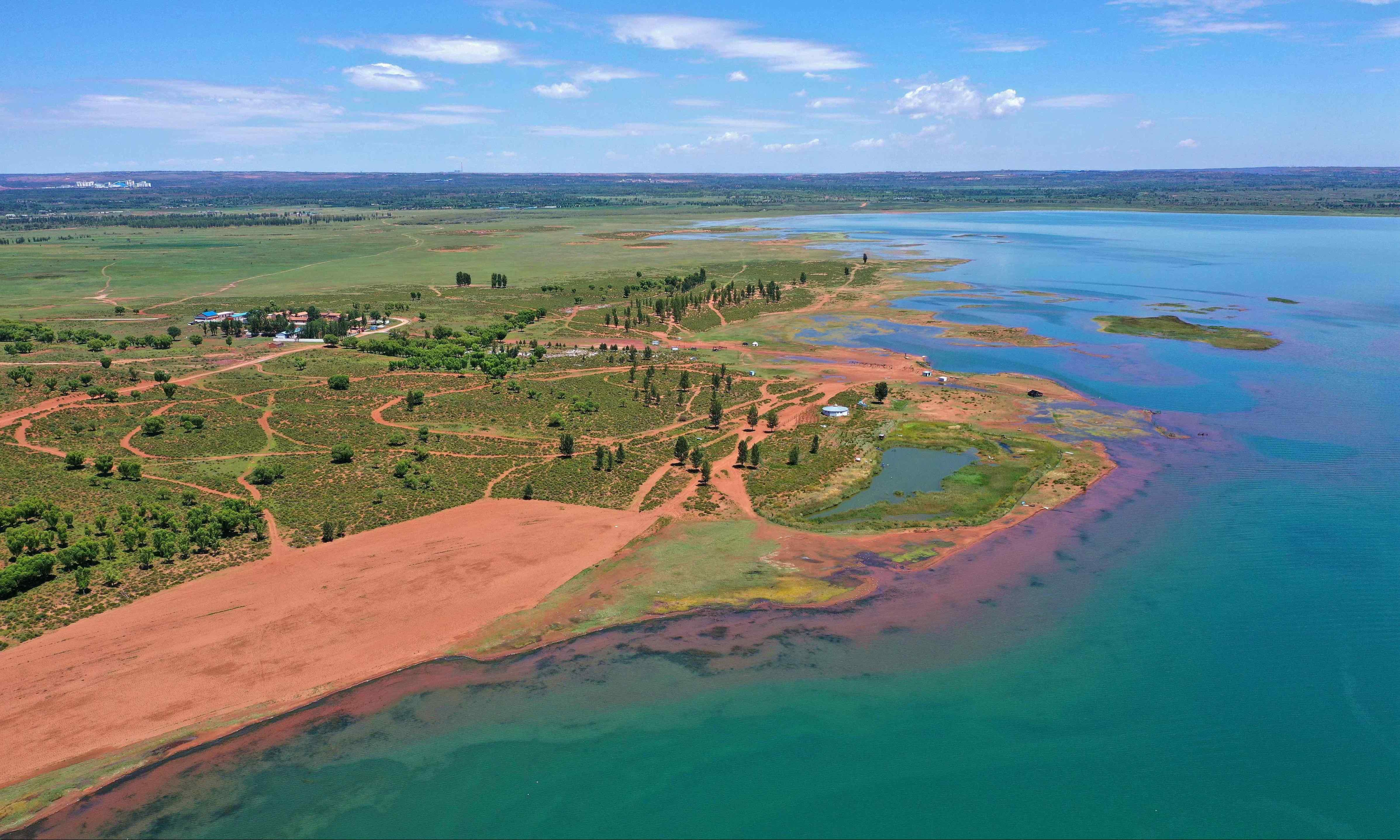 红碱淖是中国最大沙漠湖泊,位于陕西省神木市与内蒙古自治区之间,距离榆林市区约140公里处,是沙丘戈壁中的一汪清水,也是陕西省大的内陆淡水湖泊,有“沙海明珠”之称有,每一帧都是风景。
