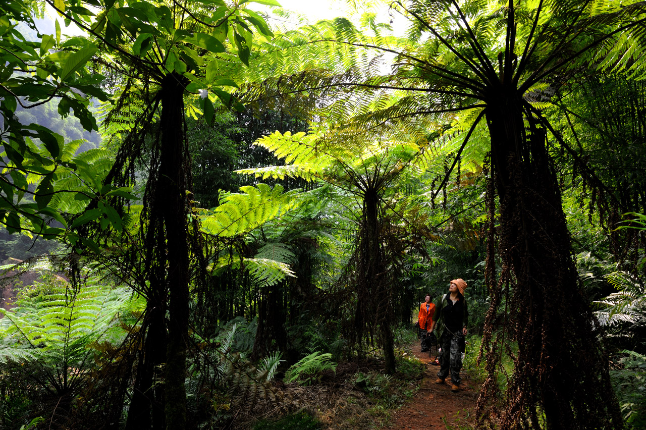 桫椤,早在距今约1亿8千万年前的中生代侏罗纪时期就十分繁茂。它和恐龙同生共荣,成为生物界在远古时代地球上的重要标志。经过第四纪冰川的侵袭,桫椤仅在一些低纬度的适宜生态环境里残存并繁衍至今,被国家确定为一级珍稀濒危保护植物。