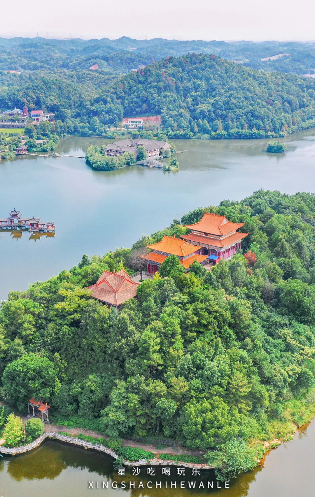 印山湖公园:长沙“小西湖”,1小时车程,亭台阁楼雅致诗情,充满江南气息,最适合穿上汉服来拍照。