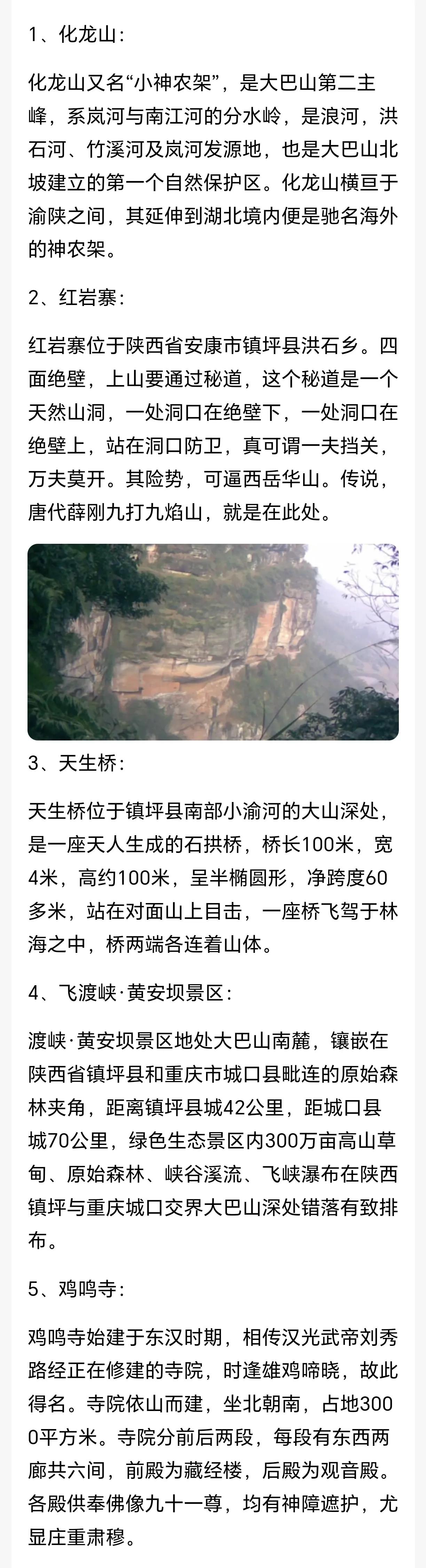 镇坪县位于陕西省东南部,大巴山北麓。东与湖北省竹溪县接壤,南与重庆市巫溪县、城口县毗邻,西北与平利县连界,镇坪县所处大地构造位置适跨秦岭褶皱系和扬子准地台的过渡地带,即以大界梁—新田坝深断裂为界,明显地分为南、北两个构造区,而深断裂以北为秦岭褶皱系加里东褶皱带,以南为扬子准地台区,共有5个景点仅供参考!