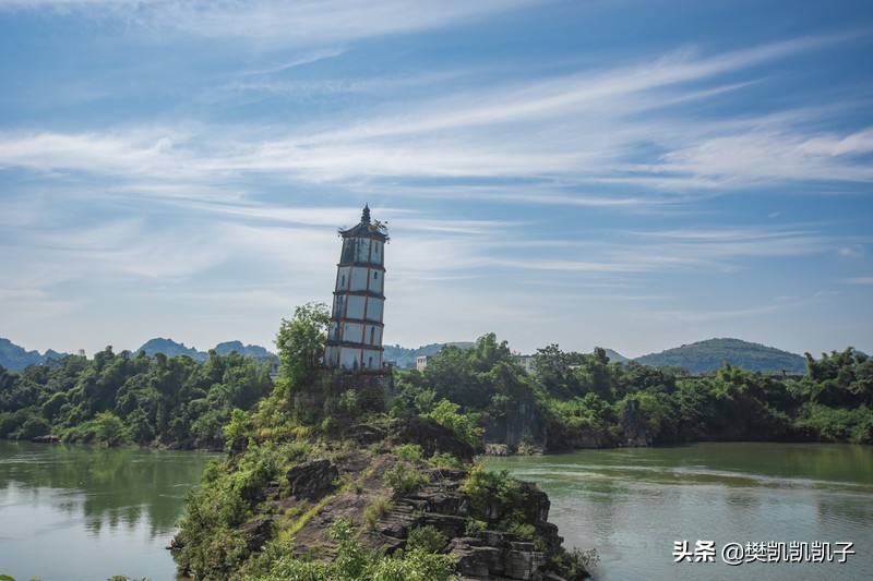 关于意大利的比萨斜塔应该是许多旅行爱好者都知道的一个地方,不过今天要说的斜塔是在崇左市江州区左江河道中一座斜塔,塔身坐落于江河道中一座叫鳌头山的小岛上,水流较缓时,还能看到江中斜塔的倒影。