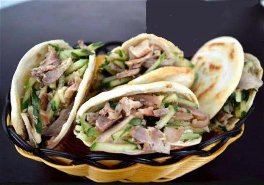 回郭镇肉合是巩义的四大名吃之首,通俗点来讲,这就是饼夹菜。但是夹的菜却很有讲究,乃是用的凉拌猪头肉制作而成。里面再辅以四时青蔬,让回郭镇肉合更具有包容性。