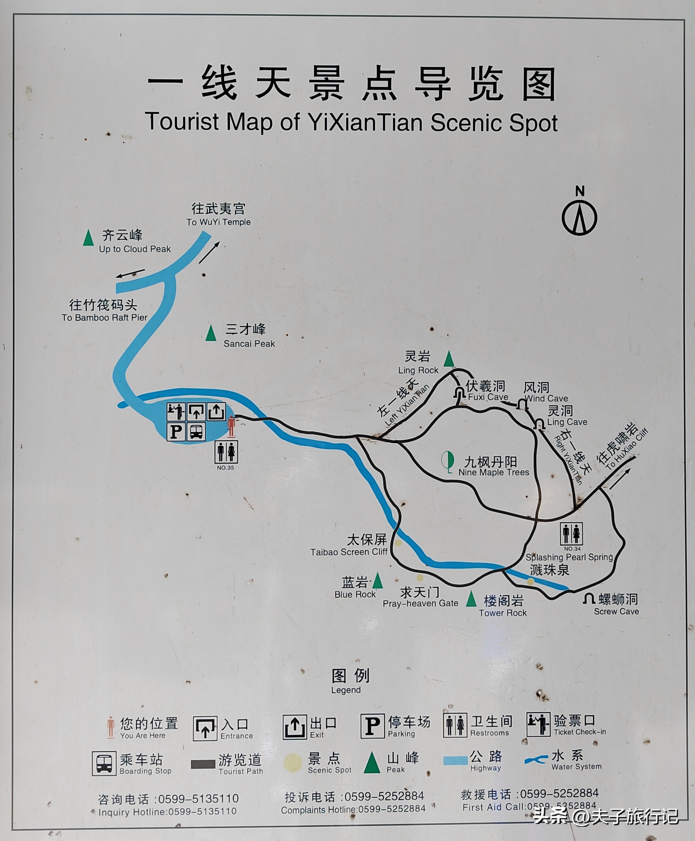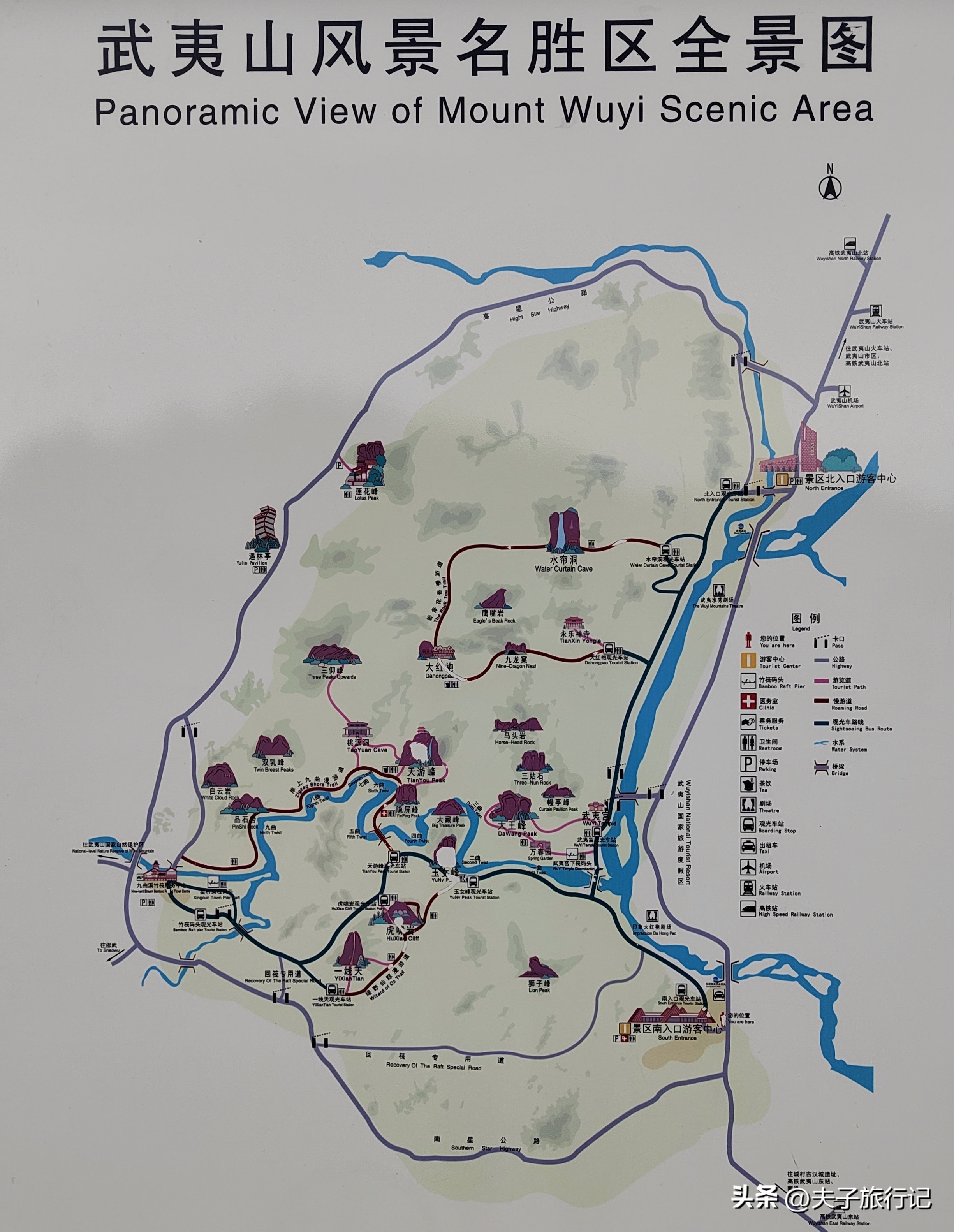 建议以南入口为主入口,一是因为南入口下面有很大的地下停车场,尤其是夏天停车很舒服;二是因为靠近三姑度假区,吃住方便,尤其对想看印象大红袍剧场的游客来说是必选;三是南入口景区观光车和公交车最多,内外交通都方便,内入口还有小火车观光车,小朋友很喜欢。