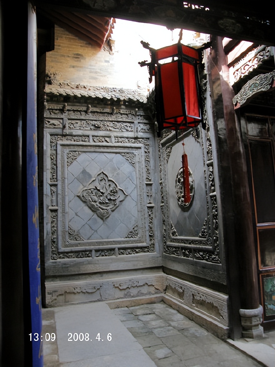 大门口有一对石狮对峙,进入大门,迎面是一座巨型屏风东西廊房端墙上有精美的砖雕