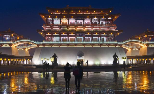 图为大明宫遗址公园丹凤门夜景