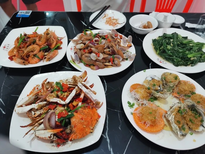 我们最终选择了一家可以点菜又可以吃到海鲜的地方(汪姐海鲜),别说这的海鲜还真不赖,小只的生蚝都有内陆地方中个那么大,海边就是海边啊