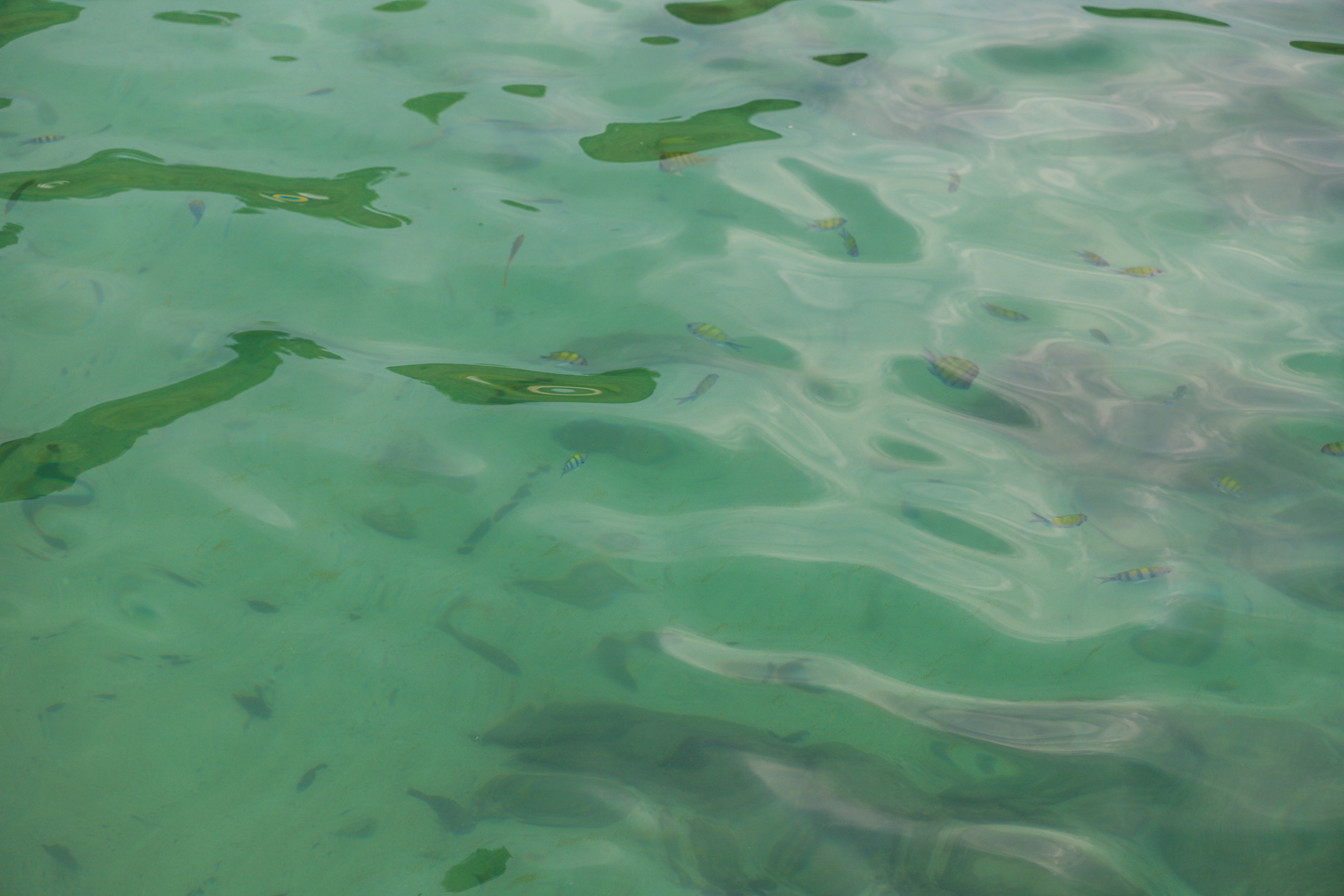 因为这里的水非常清澈,基本上你一踏上码头,你就可以看到水底的各种鱼类和珊瑚。