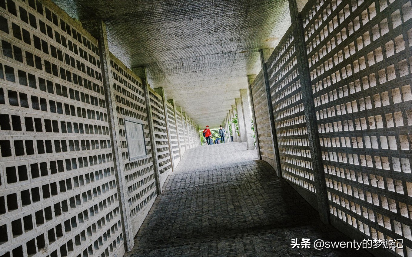 从门口春色葱茏的树丛中一直往前,信步于绵长的青砖路之上,就能看到金砖博物馆门前一条缦回到平芜尽处的长廊,墙面、立柱、顶面采用竹模拆除后留下的自然机理,更觉幽深而旷渺!