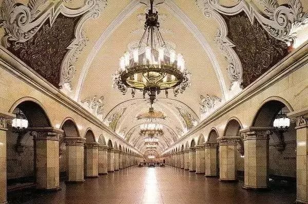 莫斯科地铁,被公认为世界上最漂亮的地铁。多用五颜六色的大理石,花岗岩,陶瓷和五彩玻璃镶嵌除各种浮雕,雕刻和壁画装饰,照明灯具十分别致,好像富丽堂皇的宫殿,享有“地下的艺术殿堂”之美称。