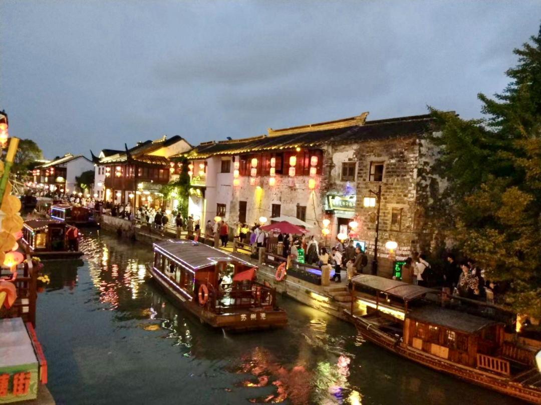 而后经观前街步行至平江路,在此听小曲、坐手摇船、逛老街,非常悠闲。