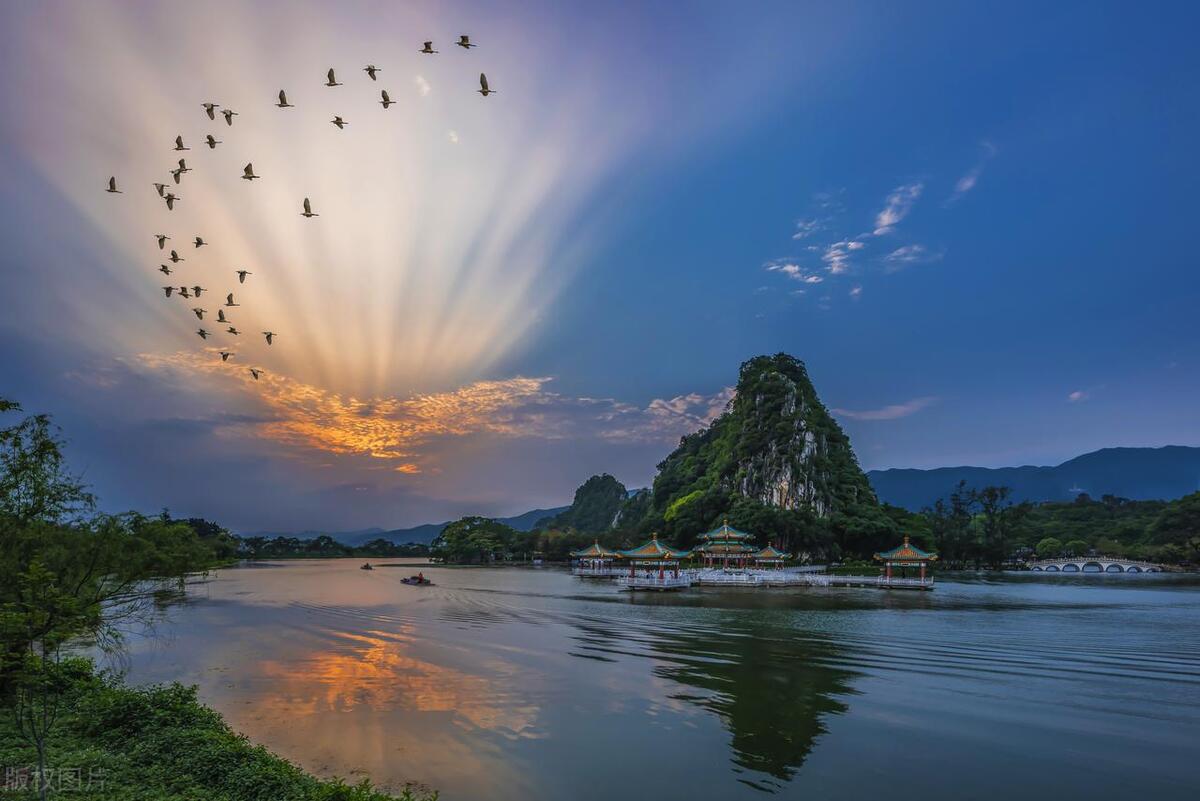 景点特色和亮点:七星岩因七座石灰岩峰排列状如天上北斗七星而得名。莲湖泛舟是必玩的项目,船在水中行,景色两岸走,如在画中游,休闲舒适、快意悠悠。