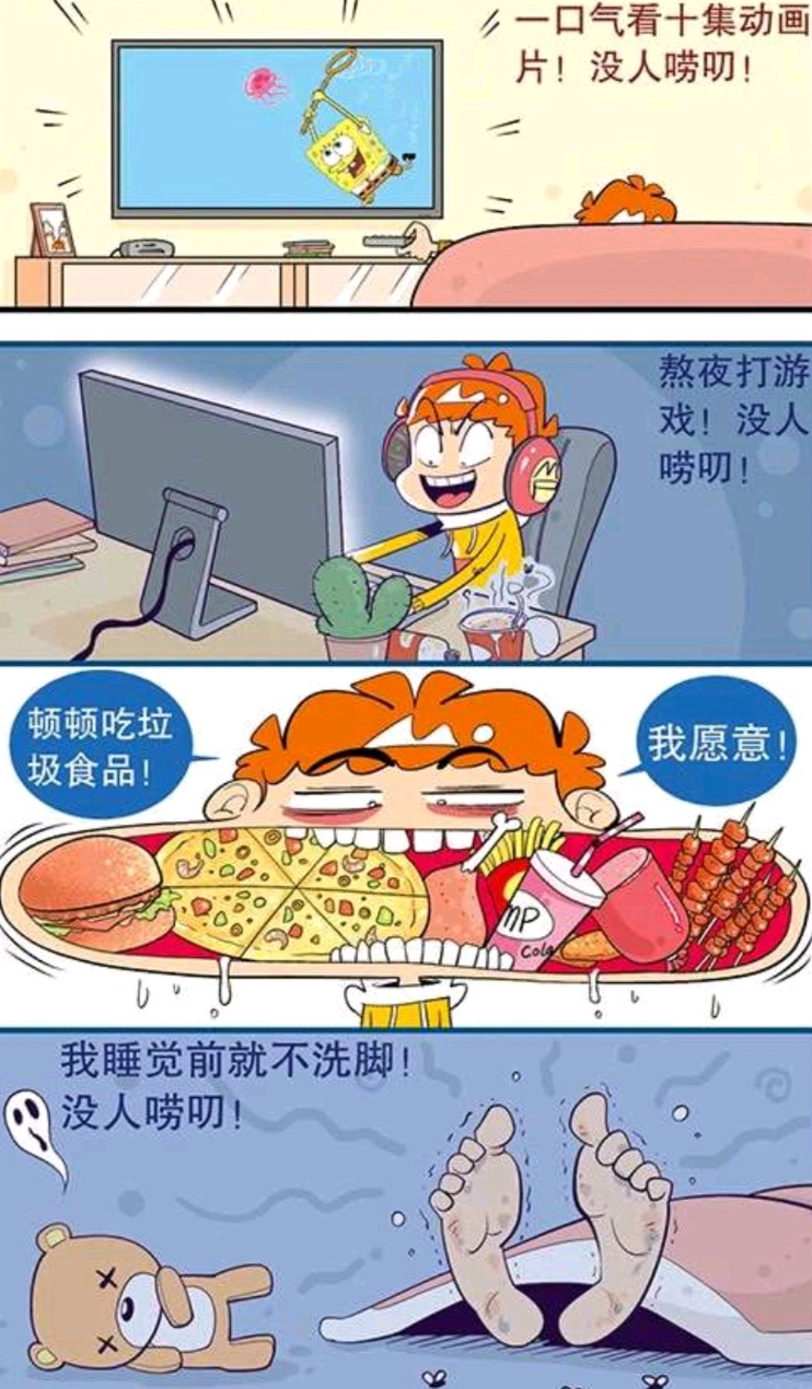 其实漫飞那时候的想法和阿衰出奇的一致,父母的管制让我们喘不过气来,所以漫飞特别向往自由,可现在想来,当自己真正自由的时候,却已经快要步入社会了。那时候真的好怀念,阿衰出现在漫飞的童年,他的一举一动都是对岁月的刻画。一口气看十几集动漫,没人唠叨;熬夜打游戏,没人唠叨;不讲究卫生,没人唠叨。