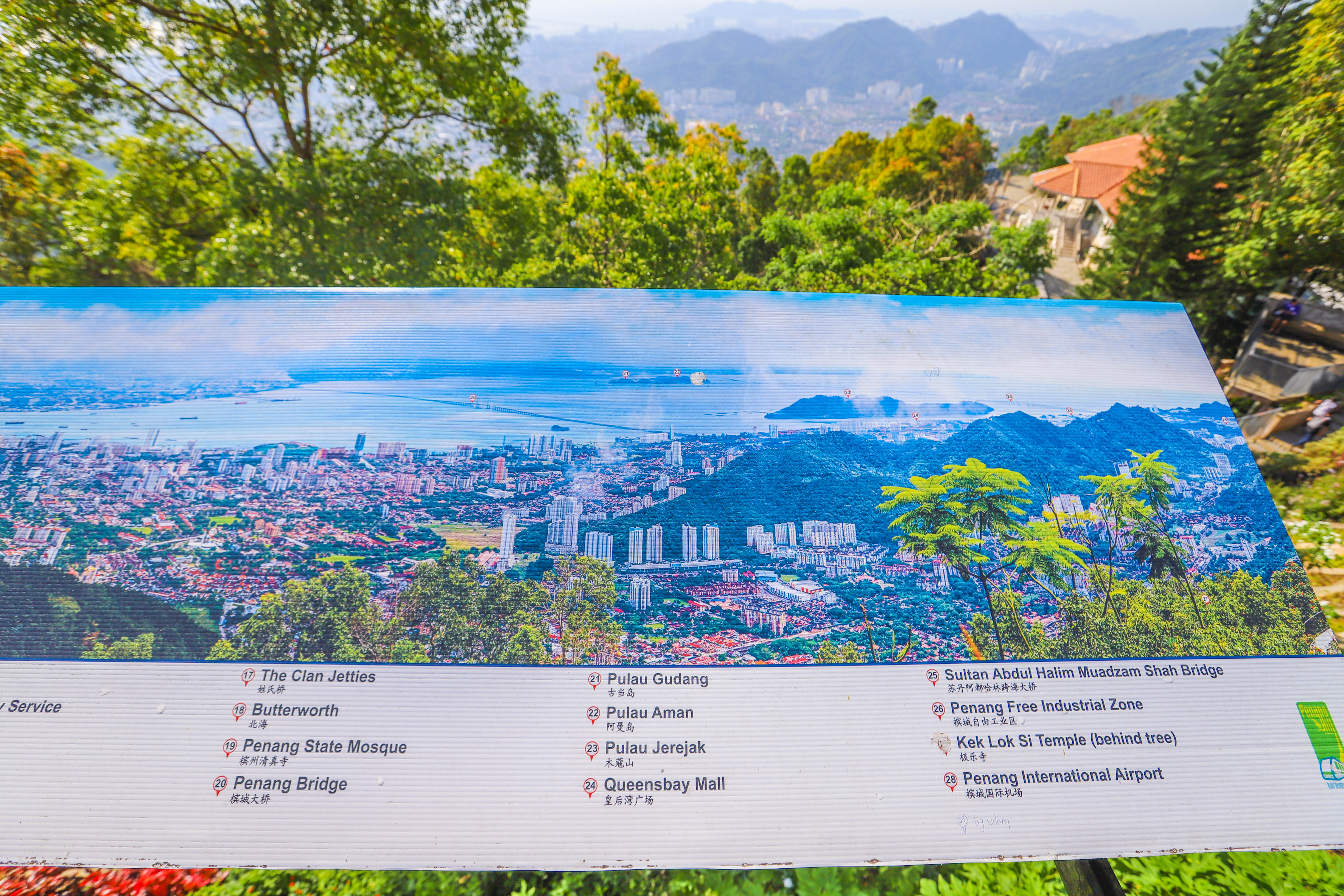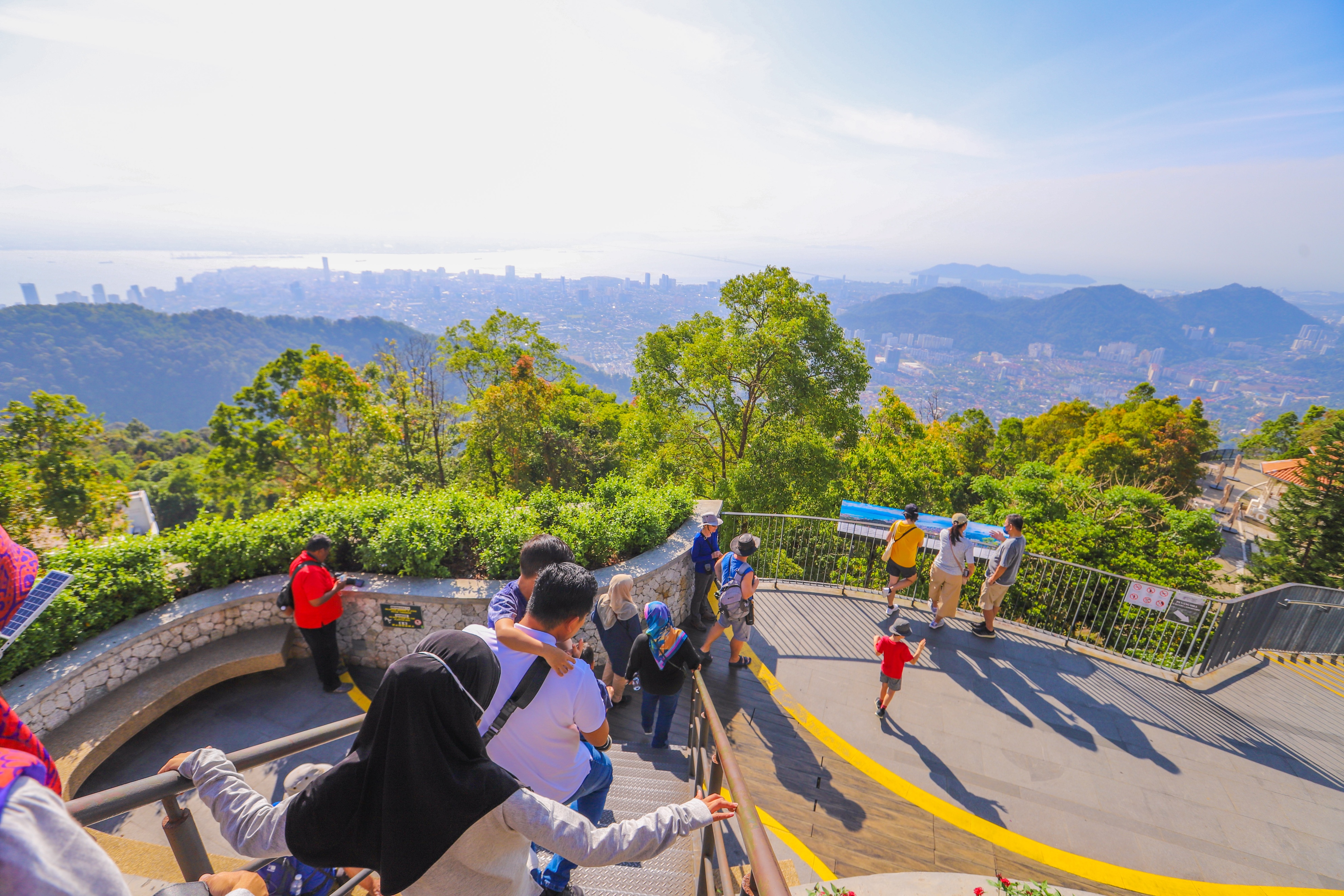 在山顶上,可以欣赏到整个槟城城市和海岸线的美景,视野非常开阔。