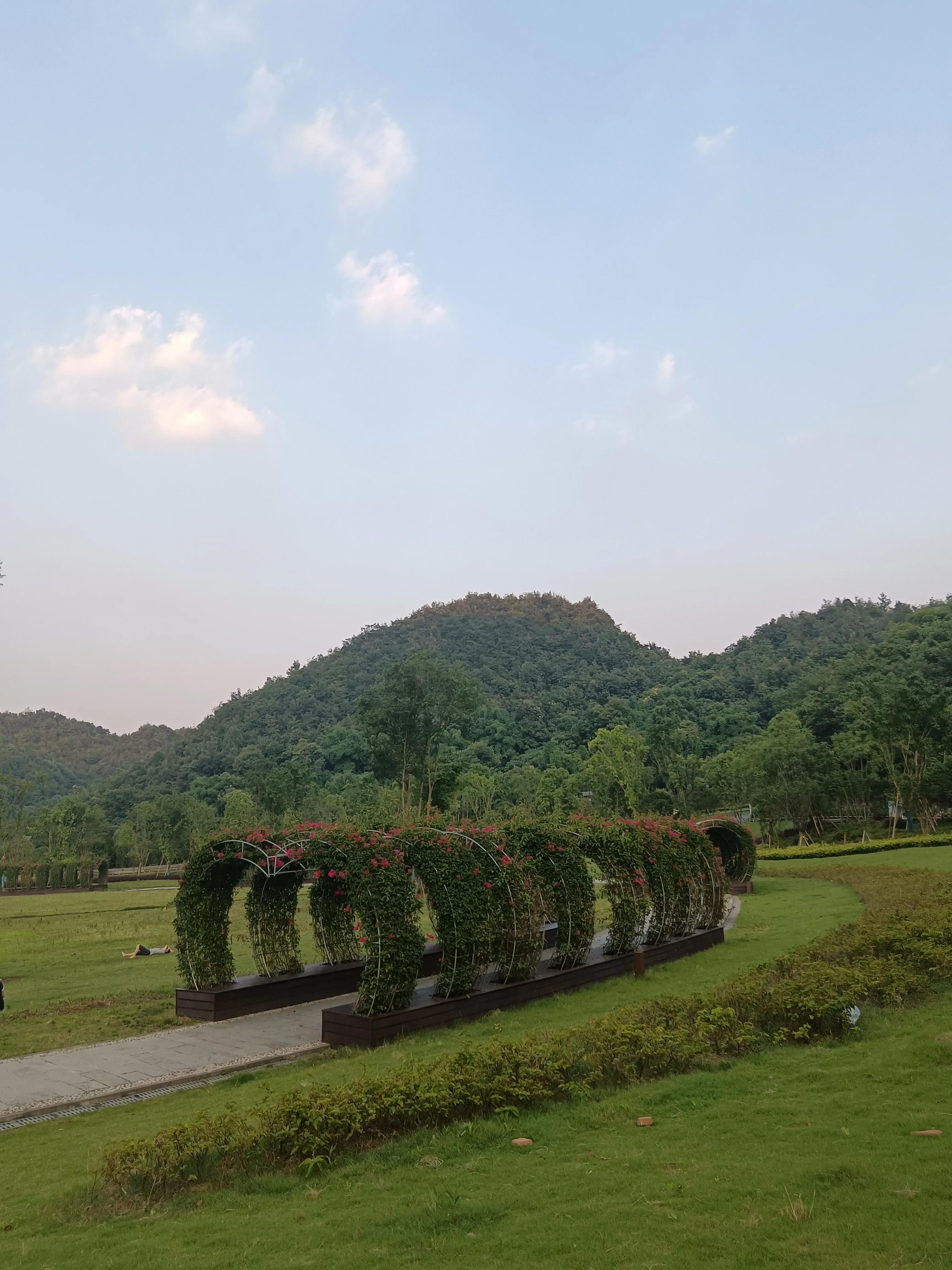 临近傍晚时分,下午6点左右,如若您刚好下班,想要散步、健身、亲子活动或是露营,建议此时上山前往三角梅园,傍晚时分的三角梅园是山上最早日落之地,无日照的草坪,此时已退去闷气,阵阵山风吹过,份外凉爽。