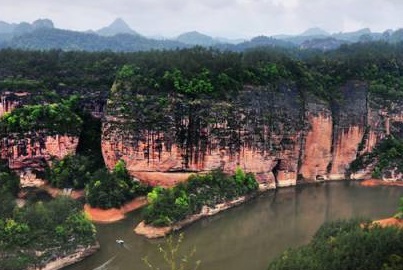 国内少有的丹霞地貌与浩瀚湖水相结合的风景名胜区,罕见的水上丹霞奇观。