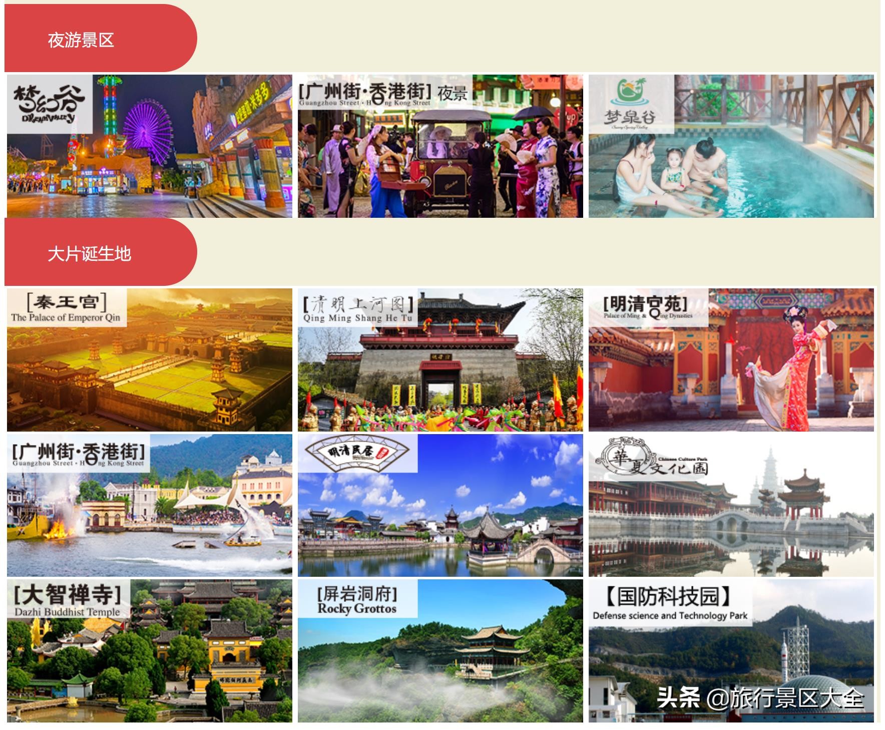 多年来,横店累计投入数百亿资金兴建广州街·香港街、明清宫苑、秦王宫、清明上河图、华夏文明园、明清民居博览城、梦幻谷、屏岩洞府、大智禅寺、红军长征博览城、春秋·唐园、圆明新园等13个跨越几千年历史时空、汇聚南北地域特色的影视拍摄基地和两座超大型的现代化摄影棚。是集影视、旅游、度假、休闲、观光为一体的大型综合性旅游区,以其厚重的文化底蕴和独特的历史场景而被评为国家AAAAA级旅游景区。