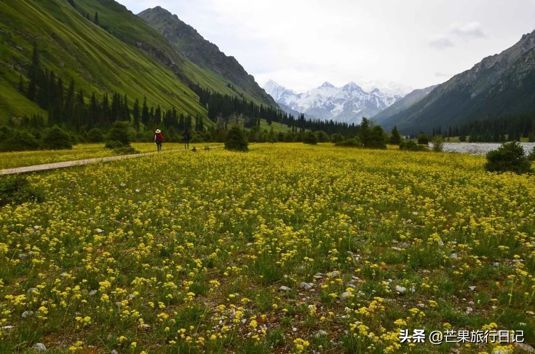 芒果旅行日记:两次新疆旅行,第一次是2014年走了南北疆大环线,第二次是2019年目前只走了北疆,两次旅行发现了新疆一个最值票价的景点,野花遍地雪山耸立河流蜿蜒绿树成荫,非常漂亮媲美瑞士。很多网友和游客表示,来了不想走,走了还想再来,是个值得一去再去的地方。