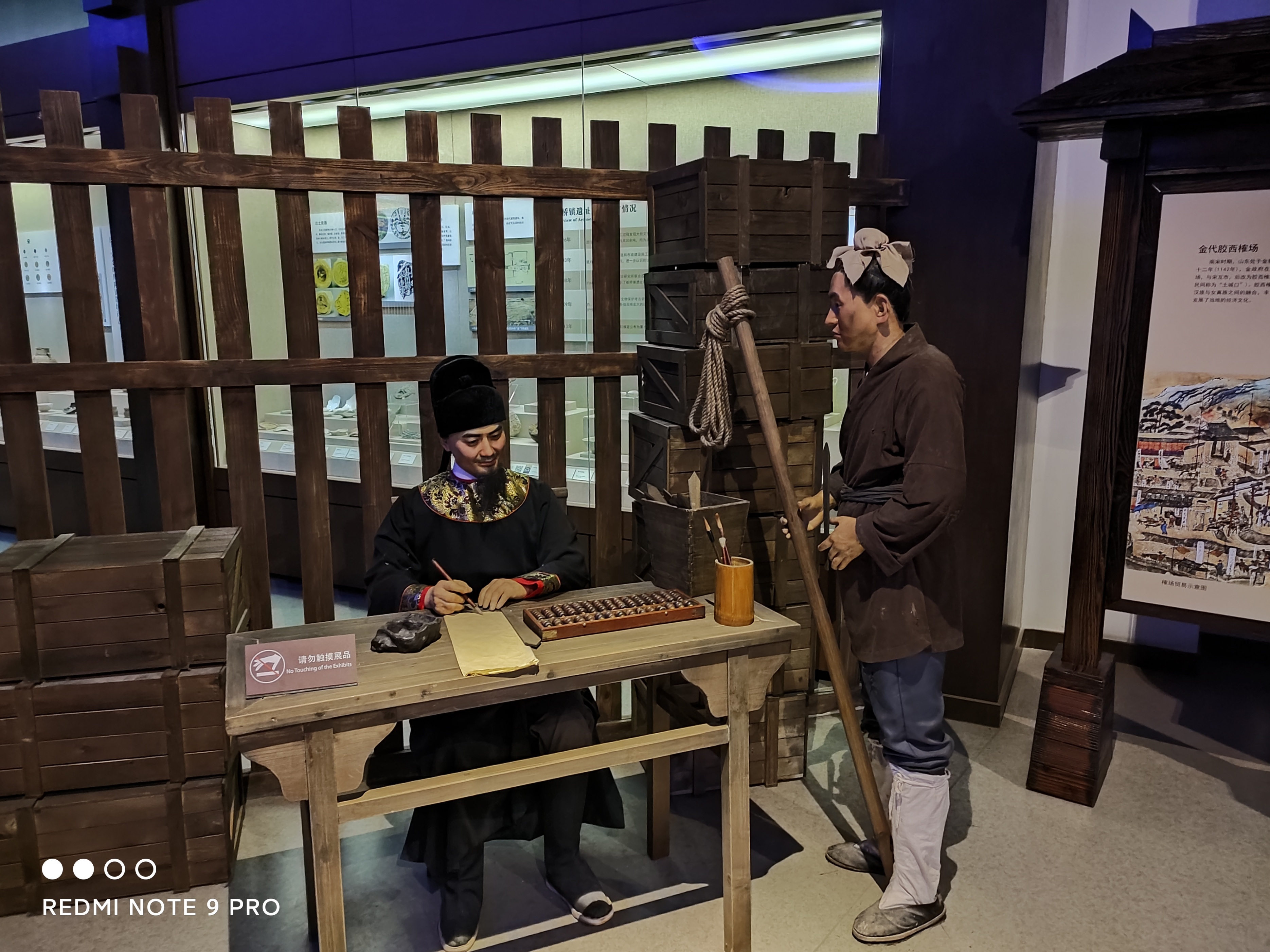 “民俗风情展厅”,现场仿建的民俗小院,极具特色的典当铺,让我们看到了百年前大沽河流域的民风民俗,看到了先进的经济发展。古风古典的板桥镇,沿街两边的店铺,感受到了现场沿街叫卖的繁华。