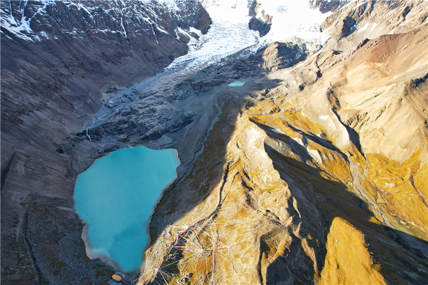 5500米高海拔徒步不是一件容易的事情,可是当美景出现在眼前的那一刻,你会觉得所有的艰苦跋涉都是值得的,琼穆岗嘎雪山的深处隐藏着一个湛蓝色的湖泊,这是冰雪融成的湖泊,拉萨河、尼木玛曲、香曲和纳木措这四大水系交汇于此,雪山和圣水相互滋养,共同缔造了琼穆岗嘎雪山独特的蓝冰仙境,只有有缘的人才可见到。