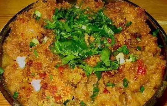 粉蒸牛羊肉,有1000多年的历史,以鲜肥牛、羊肉和面粉为原料,花椒、茴香等十三种西部产之调料磨粉腌制入味后,经武火、文火蒸制而成故称“粉蒸牛羊肉”。