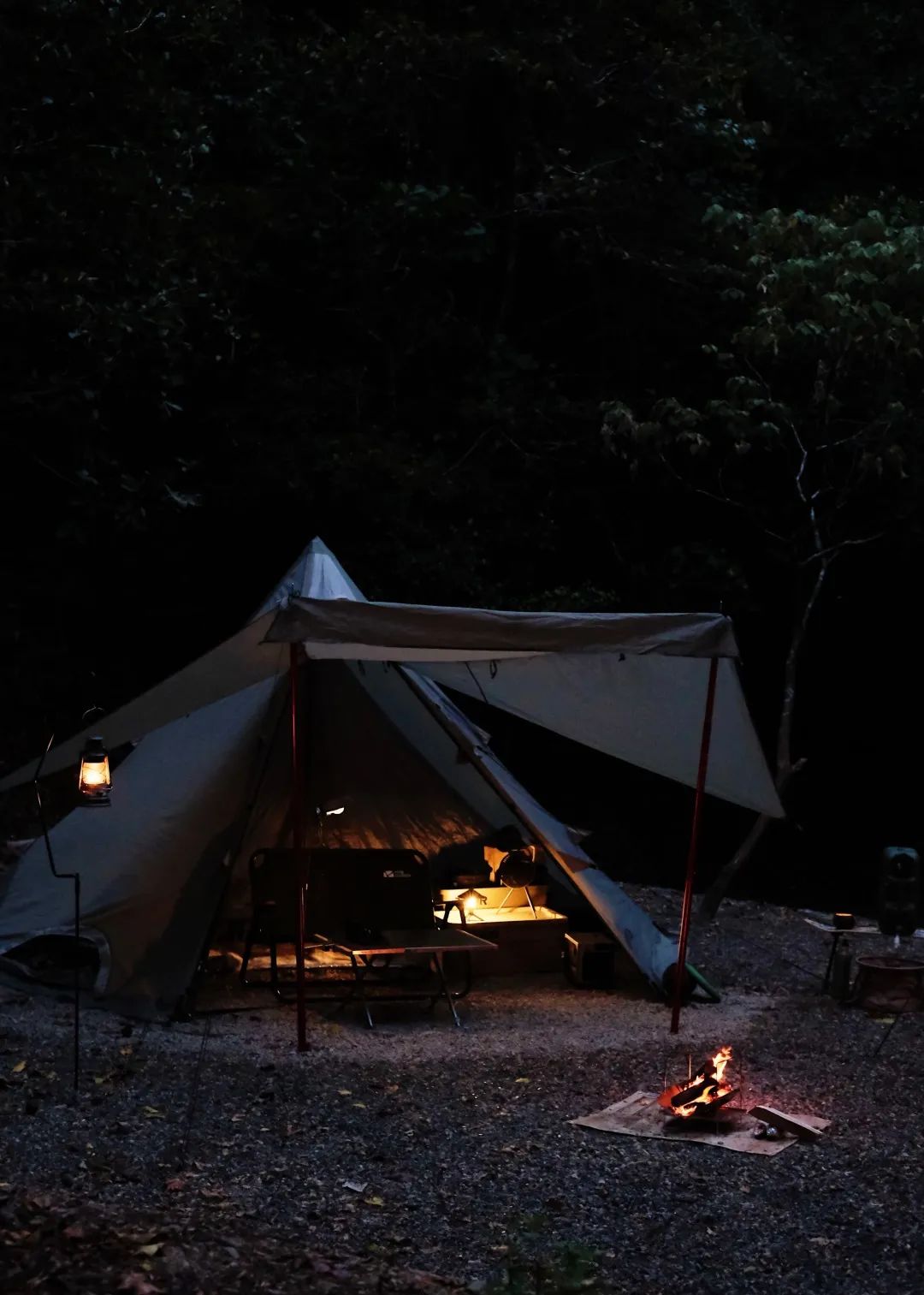 基础的金字塔帐篷就很不错了,账内面积有12.5m²,床品三件套、浴巾、洗漱备品、拖鞋什么的全部都有,甚至毛毯、地毯,暖风机、露营灯也一应俱全,这样的配套在营地里也不多见了。