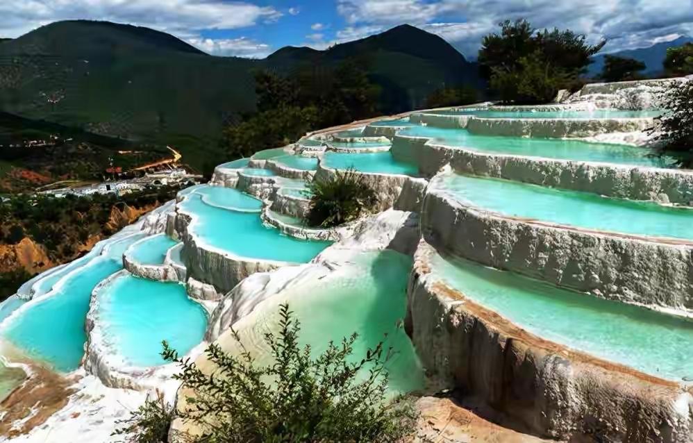 中国许多游客到过土耳其旅游,尤其是到过当地著名温泉旅游胜地,“土耳其棉花堡”,也是一处天然奇观,土耳其棉花堡神话传说是牧羊女忘记挤羊奶,被羊奶汁流在梯田上染成了乳白色层层玉盆,因此很多游客经常误把白水台错认为是土耳其棉花堡,想不到大美云南也有类似于一个土耳其“棉花堡”。