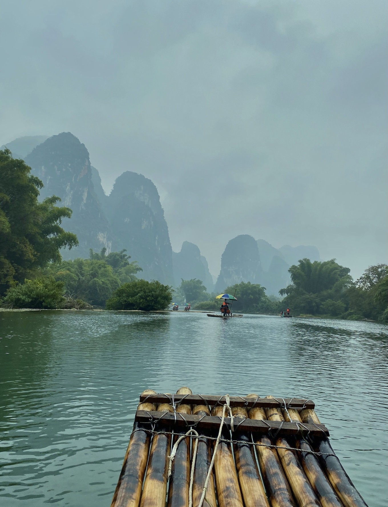 第二天睡到自然醒出发去 阳朔 啦,我们直接打车去的坐竹筏的地方,没有游全程,坐了中半段(老板说最好的景色都在中间段喔……)