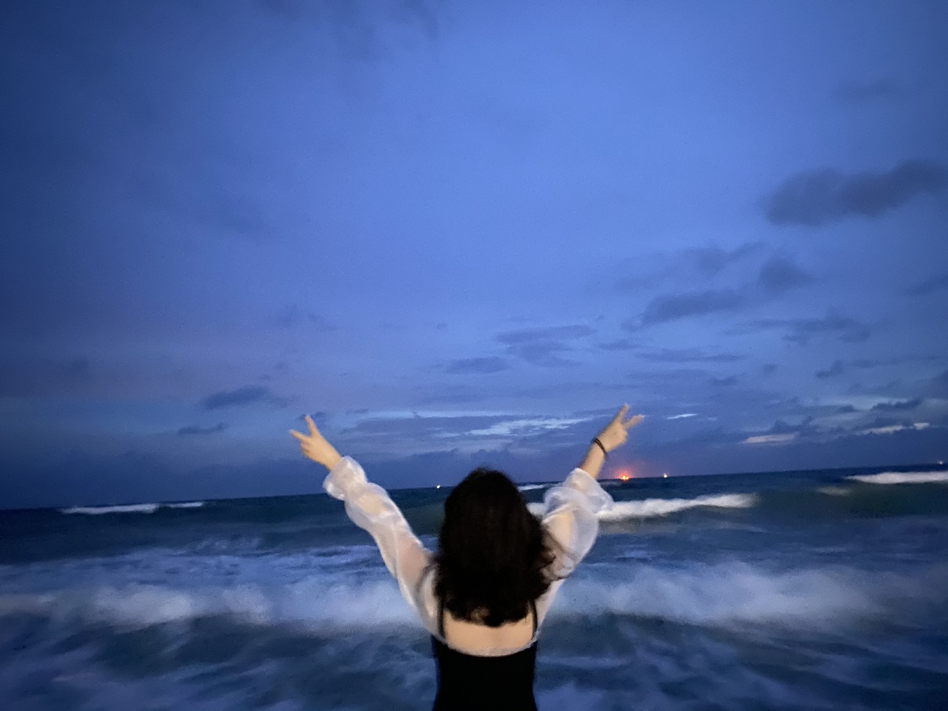 到了晚上就和最爱的人一起去了侨港沙滩晚霞很美还坐了摩托艇的八十元就可以体验一下很刺激很刺激,去沙滩一定要注意手机防水