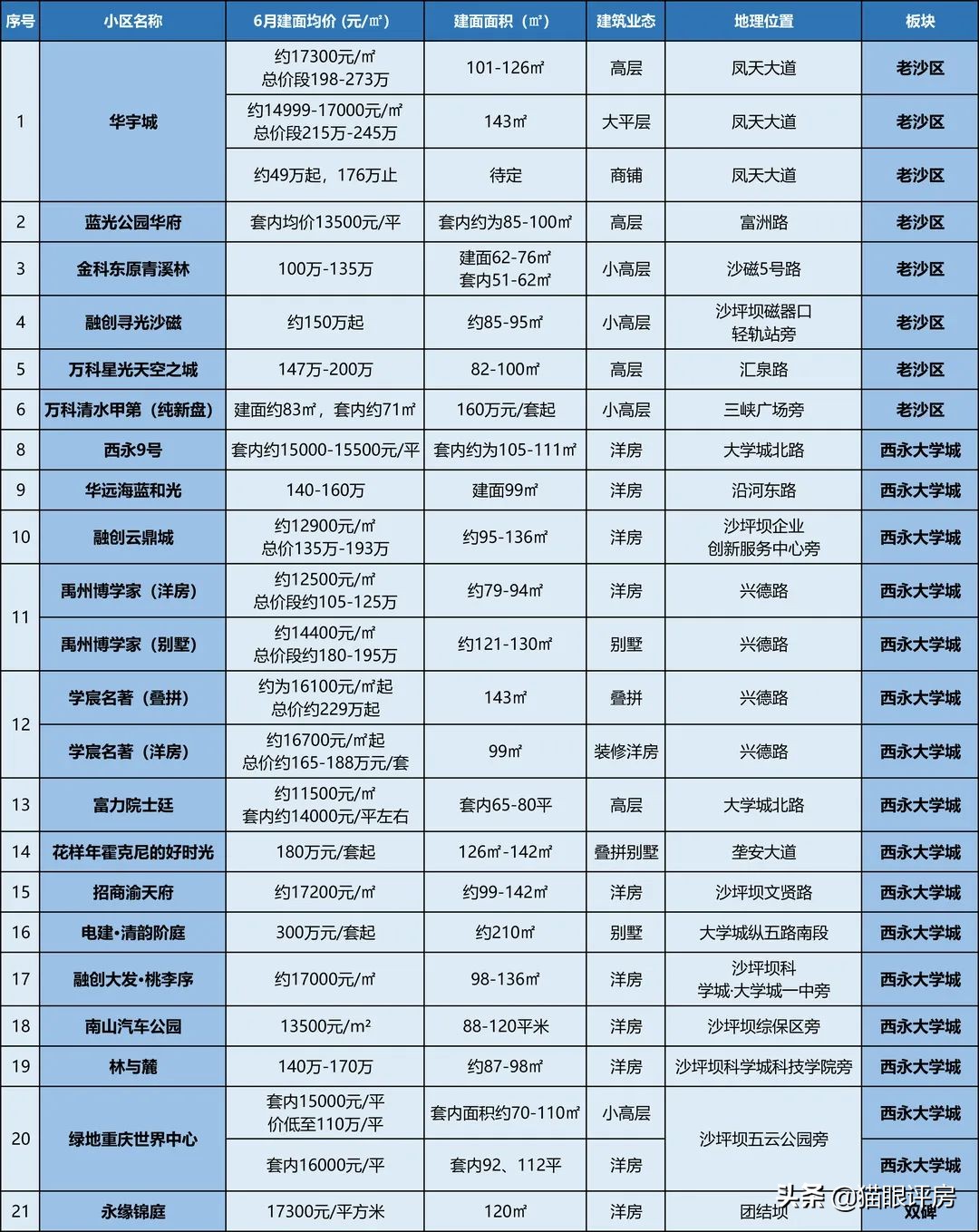 2、本文中的数据主要根据重庆房管局备案数据,以及房天下、安居客、链家等网站的数据整理而成,有一定的滞后性,加上市场成交量的变化,难免有错漏,敬请谅解;