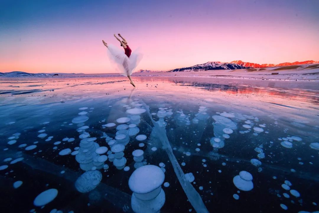 冬天赛里木湖冰泡奇观,蓝冰罕见,绝世美景