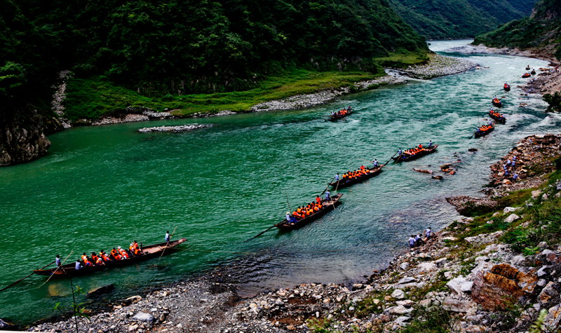 5、湖北省恩施州神龙溪纤夫文化旅游区,评选时间2011年。神农溪发源于神农架主峰,流经湖北巴东县境内,由北向南穿行于深山峡谷之中,至巫峡口东汇入长江。神农溪是一条典型的峡谷溪流,两岸山峰紧束,绝壁峭耸,溪水在刀削般的峡壁间冲撞,水道曲折,湍急的溪流中有险滩、长滩、弯滩、浅滩六十余处。水道虽狭急却清浅,漂流极富刺激而又安全。